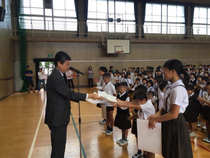 17日の児童朝会では、9月の自主学習の表彰が行われました。