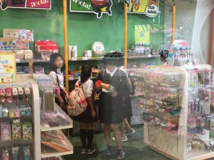 6年生の子どもたちはとても楽しそうです。スペイン村ではおみやげを買う子どももいます。