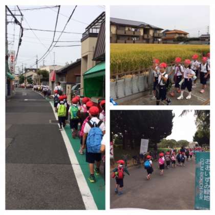 学校から今川駅まで歩き、近鉄南大阪線に乗りました。布忍駅から約2kmの道のりを30分ほどかけて歩き、大泉緑地に到着しました。緑地には保育園や小学校など、他のたくさんの団体も遠足に来ていました。