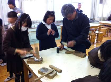実際に「錫器」を製作する体験学習を行っています。