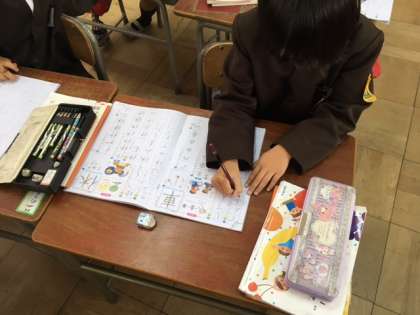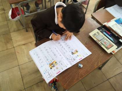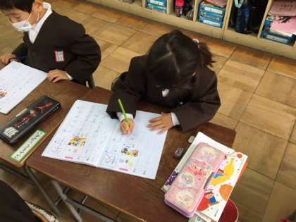 1年生の教室では、熱心に漢字学習に取り組む姿が見られました。