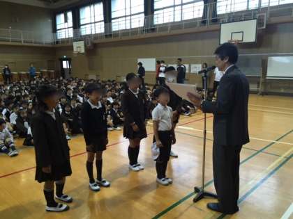 児童朝会「10月の自主学習表彰」 【11月14日】