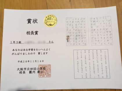 今日の児童朝会では、10月の自主学習表彰がありました。