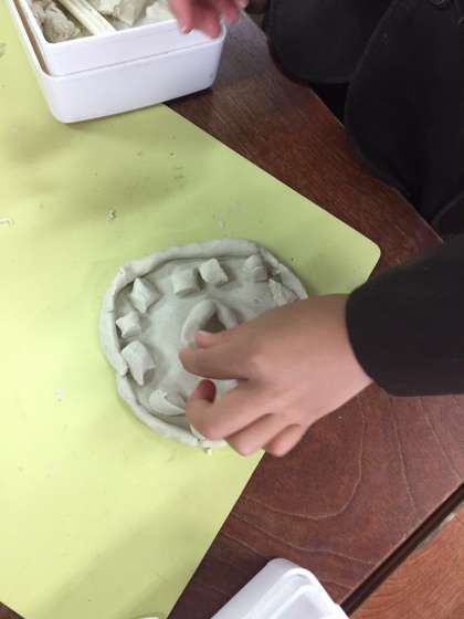 粘土を丸めたり、伸ばしたり、切ったりしてお菓子などを作りました!