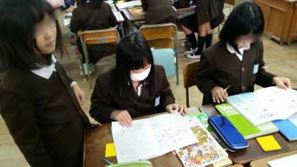 1学期よりもレベルの上がった友達のノートを、みんな真剣に読んでいました。