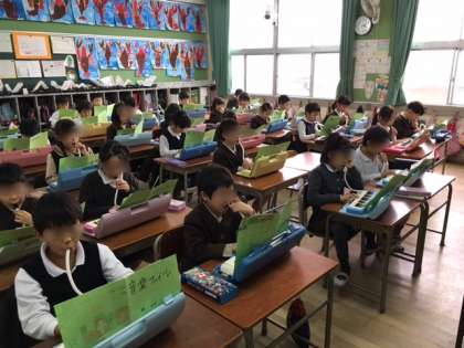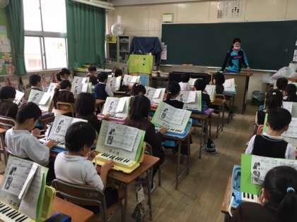 2年生は、音楽科で鍵盤ハーモニカの練習に熱心に取り組んでいます。
