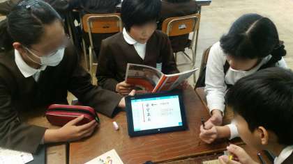 5年生は、グループごとに興味をもった「和の文化」について調べ、説明会を開くという目標に向けて学習しています。