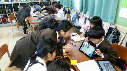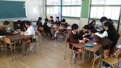 6限目は1組が発表し、2組が聞き手になりました。