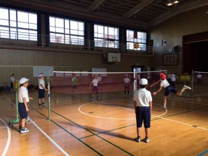 4年生は、体育科でソフトバレーボールに取り組んでいます。