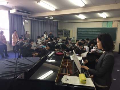 5年1組は、音楽科の学習を行い、「大空が迎える朝」の2部合唱を練習しました。