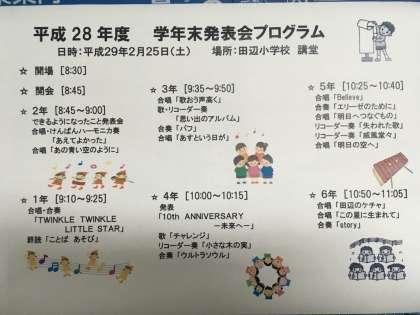 2月25日(土)は、今年度最後の土曜授業として「学年末発表会」を行います。