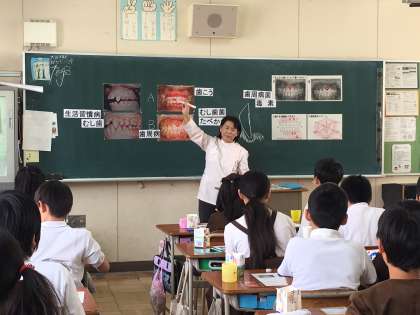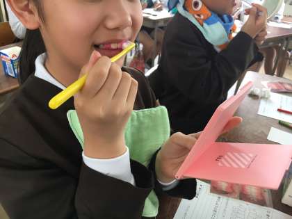 歯科校医さんと歯科衛生士さんに来ていただき、歯と口の健康教室を行いました。