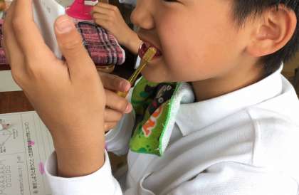 最後に、鏡で確認しながら、一本一本丁寧に歯をみがいていました。