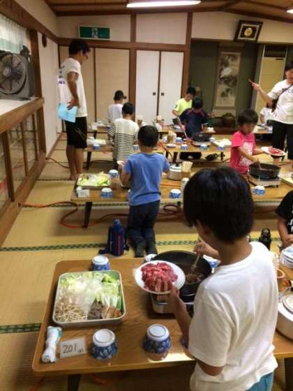 いよいよお楽しみの夕食です。食事係さんが腕をふるって味付けをしました。さて、お味のほどは‥
