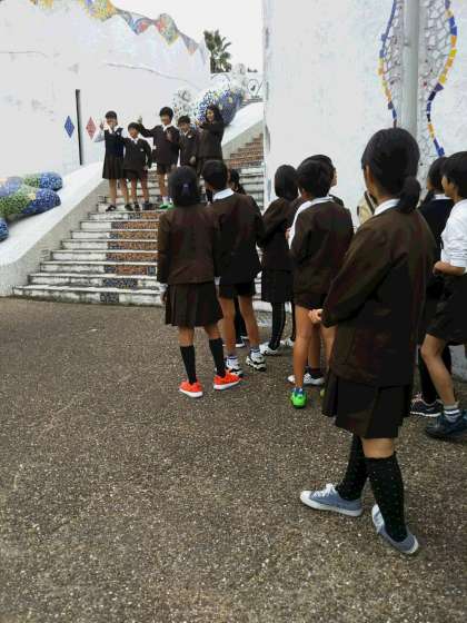 スペイン村に着きました。お弁当を食べて、班写真を撮って出発です。楽しいグループ活動が始まります。