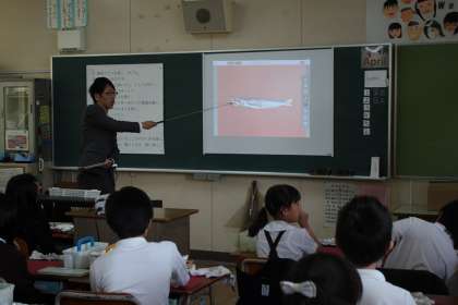 めざしの特徴をつかみやすくするために、めざしをプロジェクターに映し出し