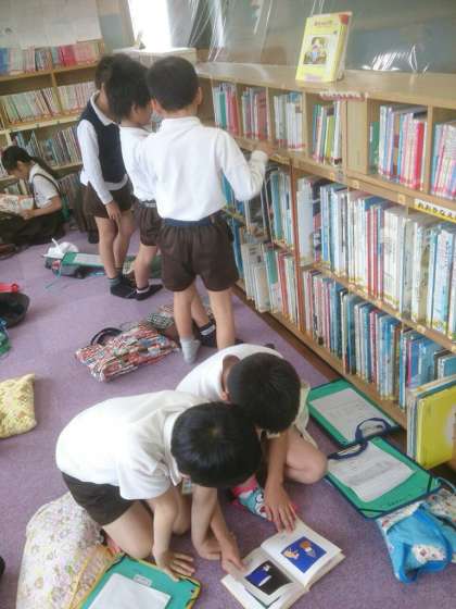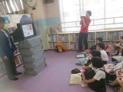 図書館では、絵本コーナーで本を読んだり、図書館でのサービスについての