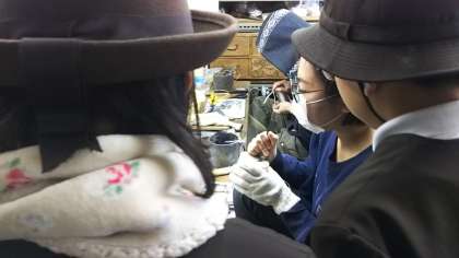 錫を溶かして、型に入れ、いくつもの工程を経て、1つの作品が仕上がることを学びました。全て手作業でとても気をつかう作業ばかりでした。