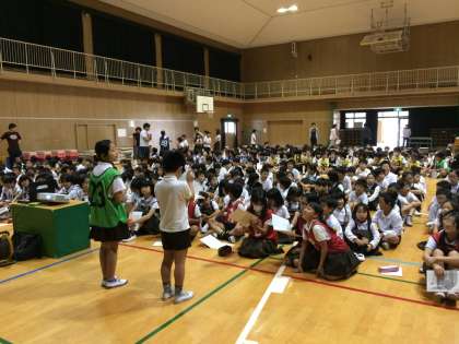 今日は、たてわり集会があり、全校遠足に向けての注意やオリエンテーリング