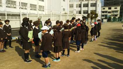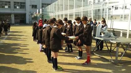 田辺小学校をさらに楽しい学校にしていってほしいと在校生にバトンを渡しました。