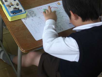 ひらがなは簡単なようで、実は長さや幅のバランスが難しくできています。そういったところも担任が指導し、子どもたちは言われた通り書こうと一生懸命取り組んでいます。
