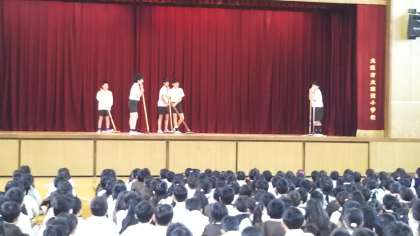美化委員会がより美しい学校になるように、掃除用具の使いかたを教えてくれました。