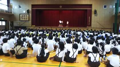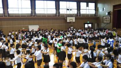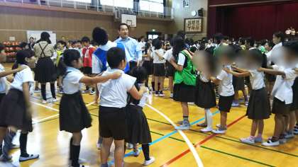 1年生の肩を6年生が持ってつながる姿はとてもほのぼのとしていました。