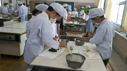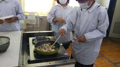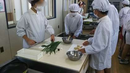 家庭科で調理実習をしました。今回は朝食のおかずを一品作りました。
