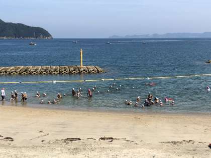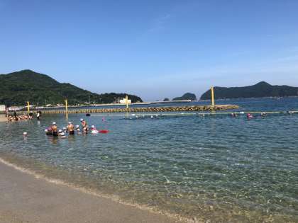 2回目の練習です。順調に泳いでいます。午後の遠泳本番に向けて、どの班もよく声を出しています。