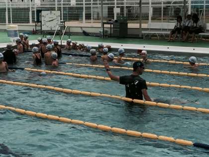 5年生もステップ別に分かれて水泳練習に取り組みました。