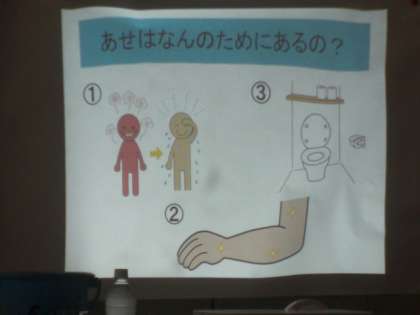 また、養護教諭から、まだまだ暑い日が続く毎日を