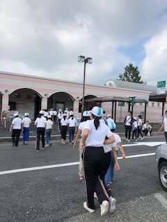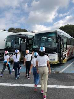 赤松サービスエリアに到着です。少しバス酔い気味の人もいますが、バスレクで盛り上がっています。