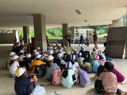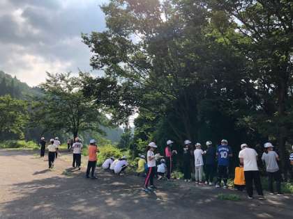 二日目の最初の活動は焼き板みがきです。明日のペイントがうまくいくように、隅々までしっかりみがきます。