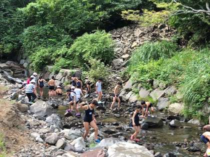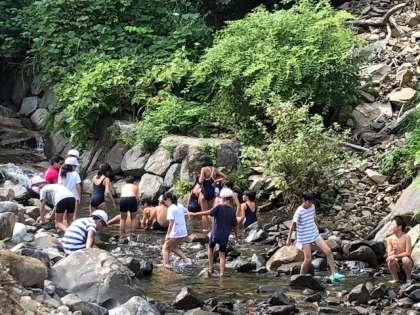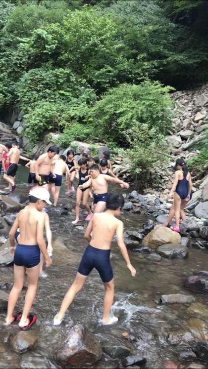 川遊びを楽しんでいます。川の水は結構冷たくて気持ちがいいです。