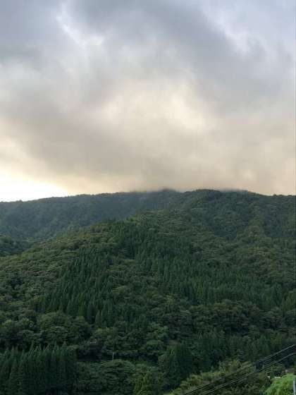林間学習三日目の朝を迎えました。今朝は、山に雲が多くかかっています。