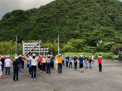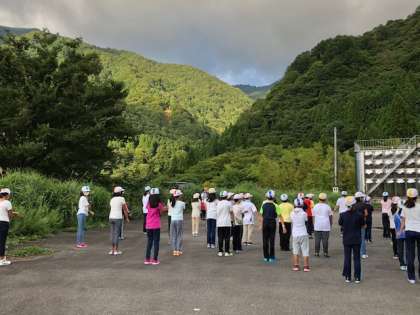 朝の会と体操です。少し眠そうですが、全員元気です。この後、朝ごはんをいただきます。