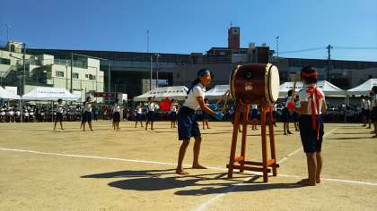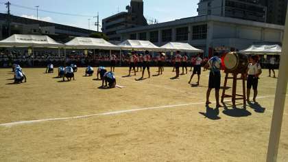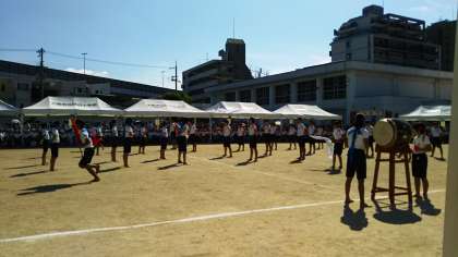 応援団による応援合戦です。赤組、白組ともにがんばれ!