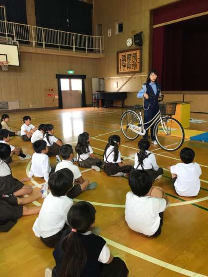 東住吉警察の方にお越しいただきました。安全な自転車の乗り方等