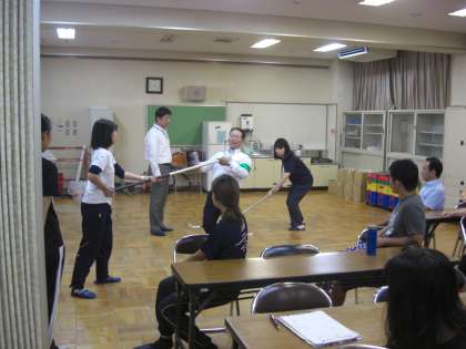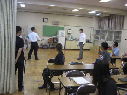 次に、さすまたの使い方を教えていただきました。特に不審者との