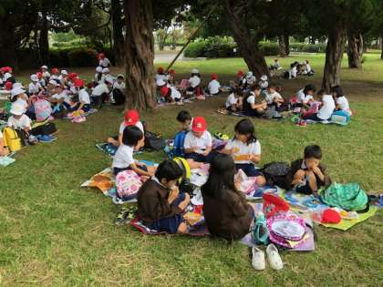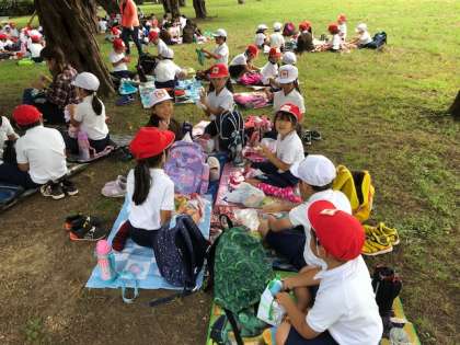 いよいよお楽しみのお弁当タイムです!たくさん遊んでお腹もペコペコです!