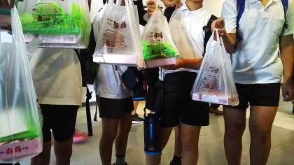 子どもたちの手には赤福と書かれた袋が。伊勢名物 赤福です。家族と食べるそうです。男の子の購入率が高そうな感じです。