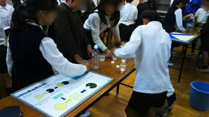 またろ過実験で汚れた水が透明な水に変わる様子も見ることができました。
