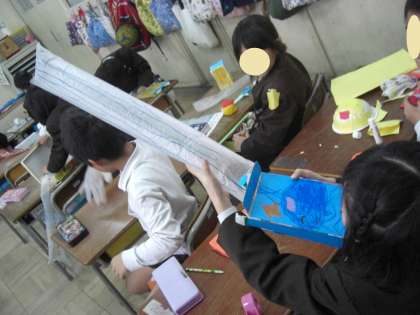 画用紙やペンで表現します。