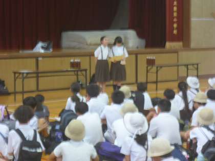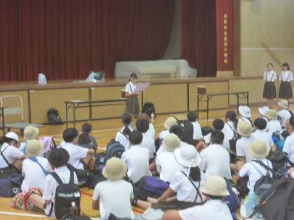 9月11・12日と6年生が伊勢志摩方面に修学旅行に行ってきました。そのときの様子をご覧ください。まずは出発式の様子からです。たくさんのお見送りありがとうございました。