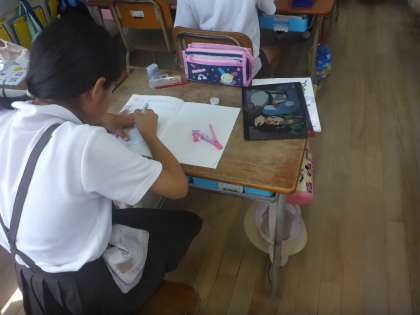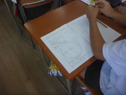 3年生の算数科の学習の様子です。今日は、コンパスを使った円の書き方を学習していました。コンパスを使ってスムーズに円を書くのは思いのほか難しく感じる人も多いと思います。ひとつひとつていねいに確認しながら円を書いていました。