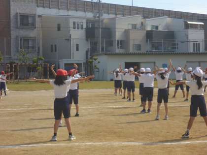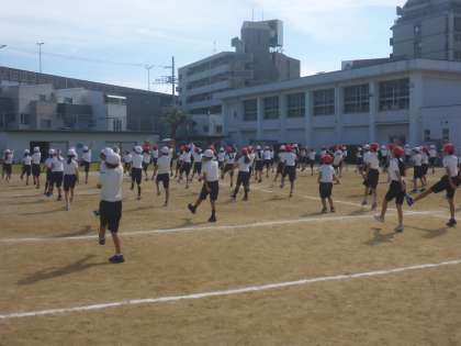 団体演技の練習です。振り付けも覚えてきていて、隊形移動もスムーズにできるようになってきていました。