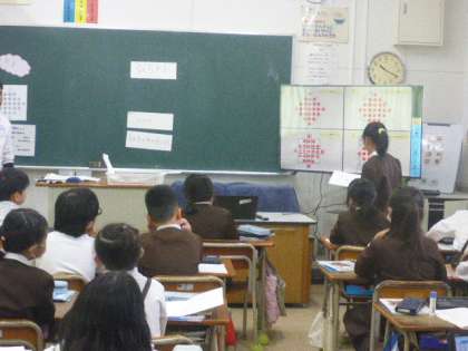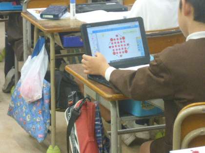 4年生の算数科の学習の様子です。ドットの数をできるだけ簡単に数え式に表す方法を一人一台端末を使って考えていました。いろいろなやり方が子どもたちから発表されていました。