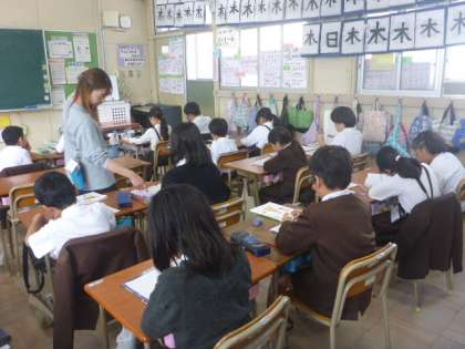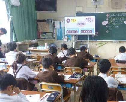 3年生の算数科の様子です。3つの数を使ったかけ算のきまりを見つけるという内容でした。今まで習ったかけ算でどのように計算していくか、考えていくことができました。