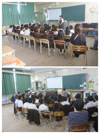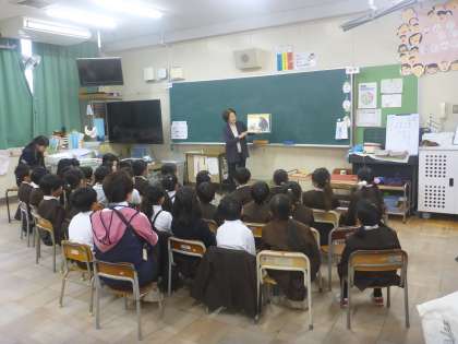 すみよしおはなしパレットのみなさんに来ていただいて、1・2・3年に読み聞かせをしていただきました。どの学年の子どもたちも、お話が始まってすぐに本の世界に引き込まれている様子でした。
