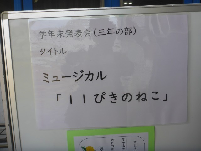 今日の2・3時間目に3年生と5年生の学年末発表会を実施しました。3年生の発表会の様子です。いろんな曲を覚えて歌ったり、セリフを大きな声で言ったりととてもがんばりました。